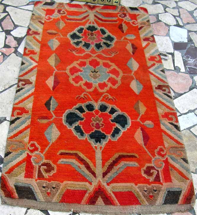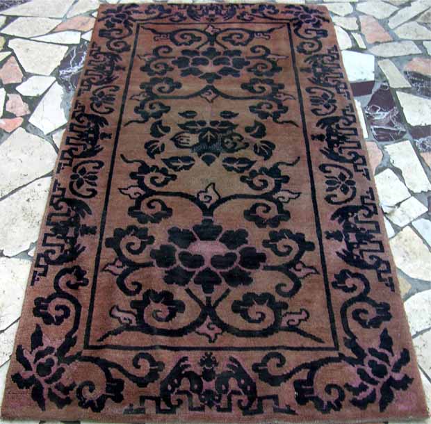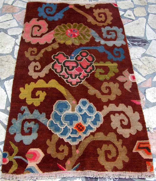 西藏枣红底色三莲花A311